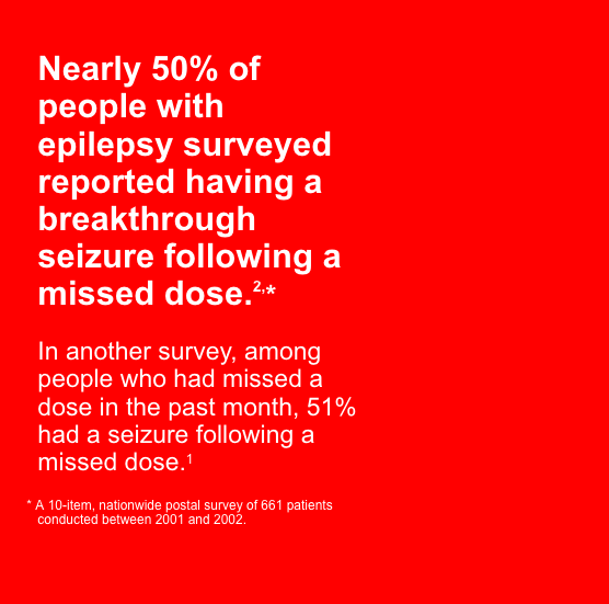 - Hovinga CA, et al. Association of non-adherence to antiepileptic drugs and seizures, quality of life, and productivity: survey of patients with epilepsy and physicians. Epilepsy Behav. 2008;13:316–322.